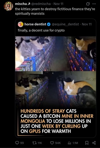 pastermil@sh.itjust.works to Microblog Memes@lemmy.worldEnglish · 2 months agoMarxist Kittiessh.itjust.worksimagemessage-square1linkfedilinkarrow-up10arrow-down10