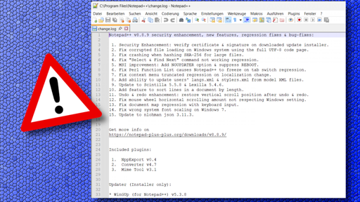The updater integrated into Notepad++ has allowed itself to be infiltrated by malware, which has been installed on some PCs. The developer of the powerful open-source text editor is responding with an update to Notepad++ v8.8.9. Users currently have to perform the update manually.