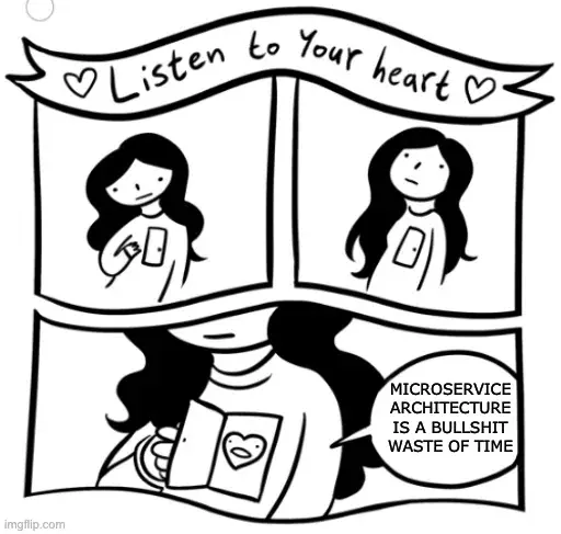 Pretty sure microservice architecture was invented by enterprise architects as a way to justify their existence, and by dev teams in general to explain why adding new features now takes so long (we have adopted best practice!).