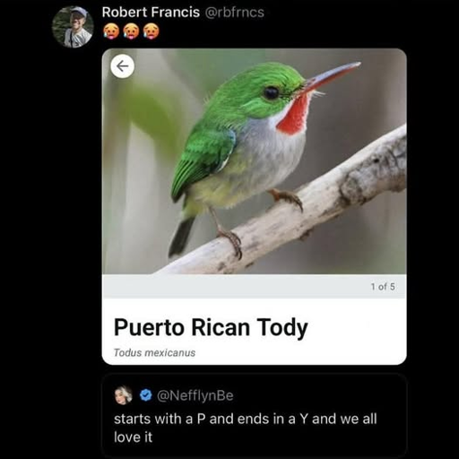 minus-squareacockworkorange@mander.xyzlinkfedilinkEnglisharrow-up1·19 days agoNo one angry that the Puerto Rican tody is the Tordus Mexicanus?