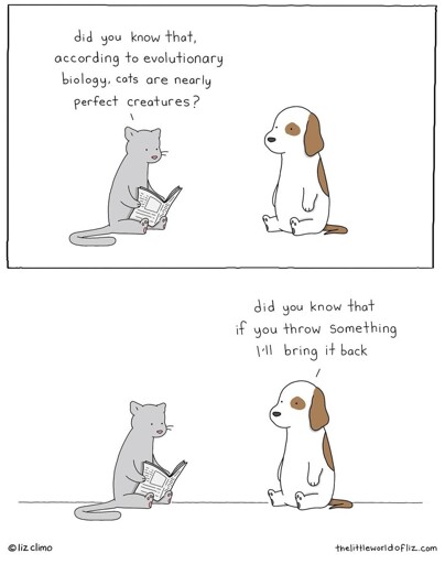 Both of my cats will play fetch, but in deference to the fact that they are cats and therefore are biologically pre-programmed to be awkward neither of them will actually give me the toy back. Instead they drop it just out of arms reach and then sit and stare at me.