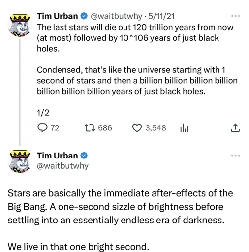 Basically, if you assume it’s possible to upload our intelligence to a computer and run it, then you can keep the energy going to run it for a very, very long time. Well past the heat death of the rest of the universe. It depends on running things in an on and off state to conserve energy for trillions of years. Subjectively, the people in there wouldn’t notice that and would simply see their active lifespans go for trillions of years. It’s not clear what the limit would actually be.