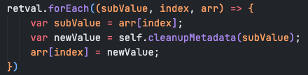 For those unfamiliar with JS: subValue (the first argument in the forEach callback) is the value contained at arr[index].