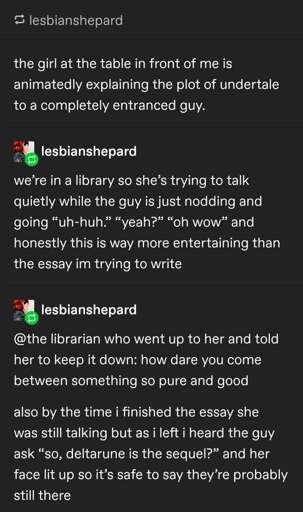 Oh shit I missed that point! All the more reason for librarian to at least chill tf out, if not try to facilitate their friendship in some way