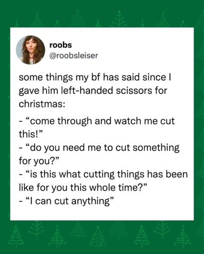 I’m right-handed. I just write left-handed, for some unfathomable reason. That does not make me left-handed.