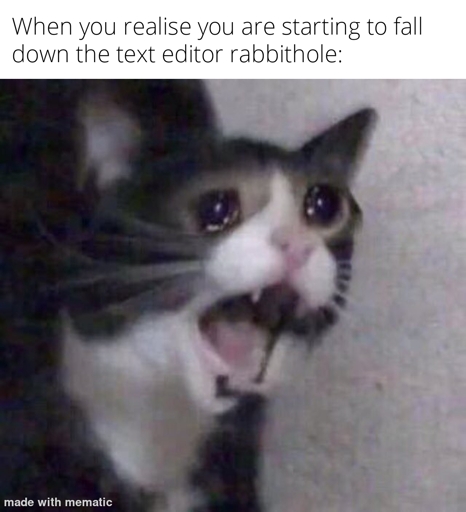 da_cow (she/her)@feddit.org to linuxmemes@lemmy.world · 15 days agoI Am starting to actually get somewhat comfortable using emacsfeddit.orgimagemessage-square112linkfedilinkarrow-up1520arrow-down111