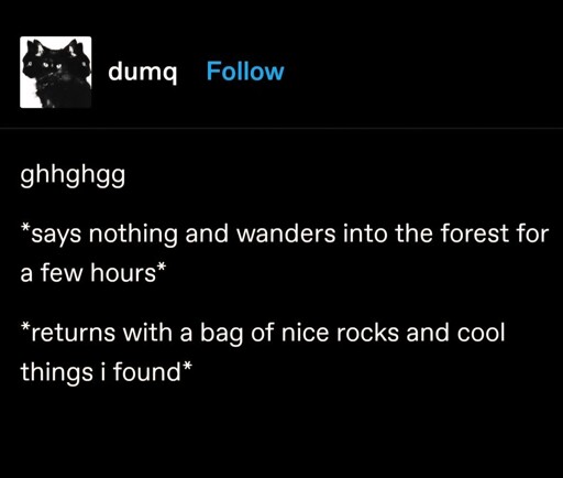 minus-squarePat_Riot@lemmy.todaylinkfedilinkEnglisharrow-up2·1 day agoThis is completely regular behavior from my wife. Rocks, mossy bits of wood, ferns she finds and then puts in her moss gardens in other parts of the woods.