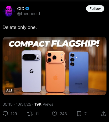 minus-squarestealth_cookies@lemmy.calinkfedilinkEnglisharrow-up1·3 months agoWhy would you delete a flagship? More choice and competition is always better, though these products are just way too similar, the industry needs more differentiation.
