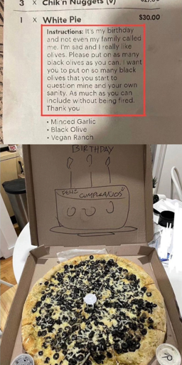 Manager gets a call about 15 minutes later. Guy calls in and asks to talk to the person who made his sandwich. Manager says “sigh, what did he do this time?” Guy says he’s been eating at Burger King for 15 years and this was the first person to make his Whopper the way he wanted.