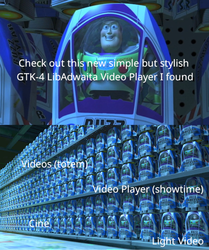 VegOwOtenks@lemmy.world to linuxmemes@lemmy.worldEnglish · 4 days agoYet Another Video Player With Less Controlslemmy.worldimagemessage-square38linkfedilinkarrow-up1277arrow-down16file-text