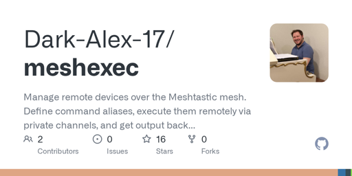 MeshExec is a little binary that attaches to your serially-connected Meshtastic node, and looks for messages in a specified private channel for aliases to execute. Then it will execute whatever commands you specify and automatically chunk them and send them back through the mesh in a staggered fashion. This chunking is done to both fit inside the max message size that Meshtastic supports, and so that the mesh is not overwhelmed with messages and drops them.