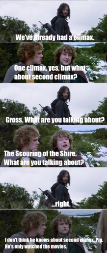After the ring is destroyed Saruman invades the Shire as a mafia boss and nicknames himself “Sharky”. Then Frodo and the gang kick his butt and Frodo declares himself Sheriff, defunds the police, and resigns.