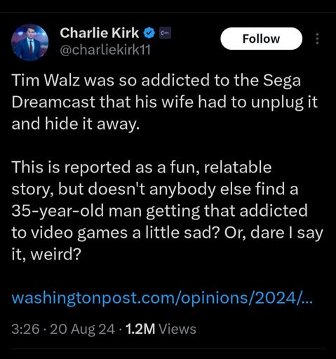 arrow-up11arrow-down1imageWow, they really attacked gamers. Conservatives speedrunning how to be hated by everybody.slrpnk.netByteOnBikes@slrpnk.net to Political Memes@lemmy.world · 1 year agomessage-square3linkfedilink