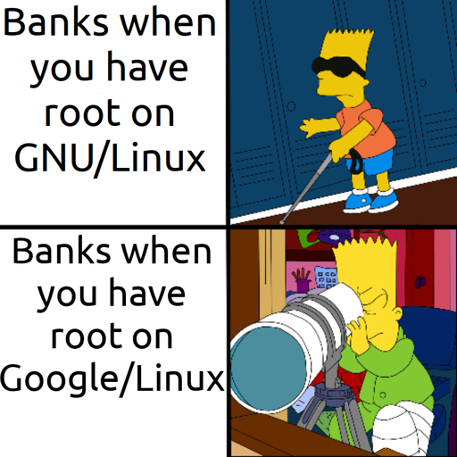 Waffelson@lemmy.world to linuxmemes@lemmy.world · 2 years agoWhy don't banks like root on Android?lemmy.worldimagemessage-square11linkfedilinkarrow-up12arrow-down10