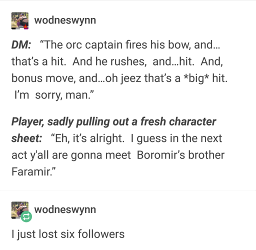 6·7 days ago“One does not simply walk into Mordor.” - Boromir
